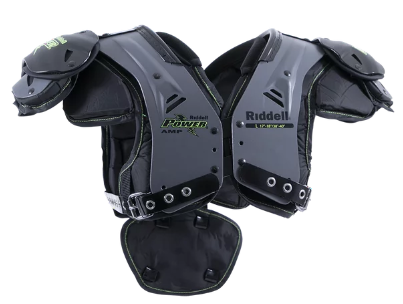 Junior Varsity sized shoulder pad complete with patented Air Management liner system and built-in back plate. The Power Amp Shoulder Pad allows for maximum range of motion and is ideal for all positions, Air Management Liner System forms a semi-sealed cushion of air to help spread impact energy throughout the liner Flat pad design for low profile and increased mobility