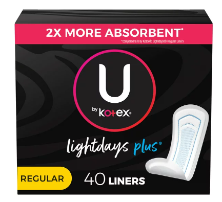 Ideal for light absorbency days, U by Kotex Lightdays Plus Panty Liners feature a ComfortFlex design that fits and flexes for outstanding skin comfort. These pantiliners for women are 2x more absorbent* with channels to help stop leaks. They are so soft, it feels like real underwear. U by Kotex Lightdays Plus Liners are individually wrapped in vibrant colors and patterns, inspired by the latest fashion trends, so you can easily take them with you in your purse or bag.For period protection, try U by Kotex CleanWear Pads in regular absorbency. U by Kotex feminine products are FSA/HSA/HRA-eligible in the U.S. Packaging may vary from images shown.*Compared to U by Kotex Lightdays Regular